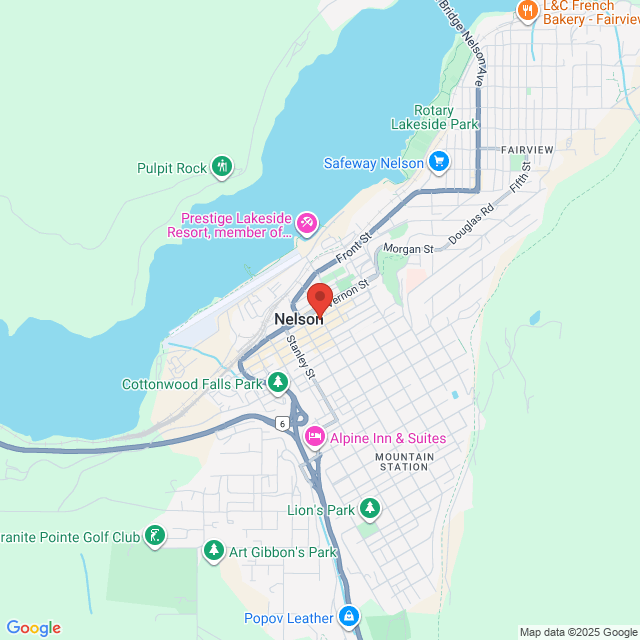 Downtown Nelson Located in downtown Nelson, BC, near the cross streets of Baker and Josephine St.